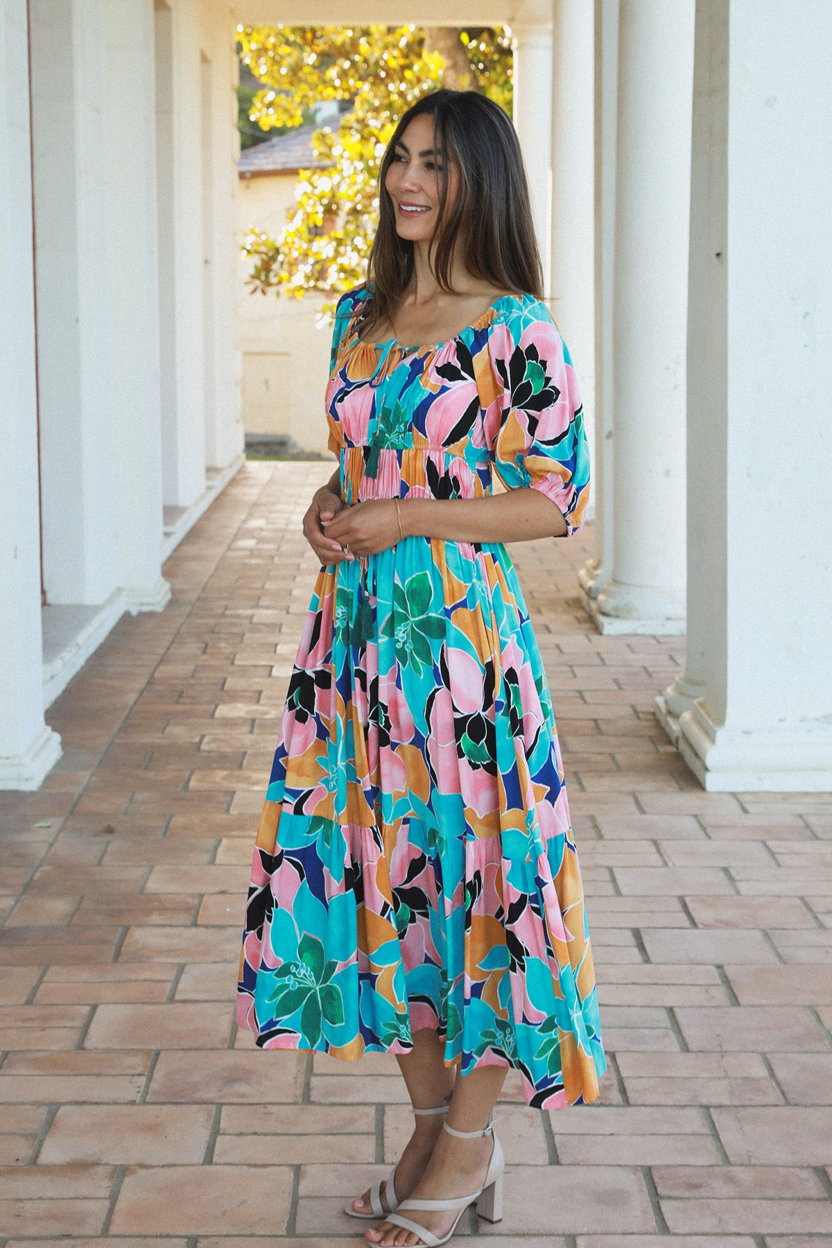 This playful dress boasts a flattering off-shoulder design that will make you feel confident and feminine. Perfect for a casual day out or a fun night on the town.