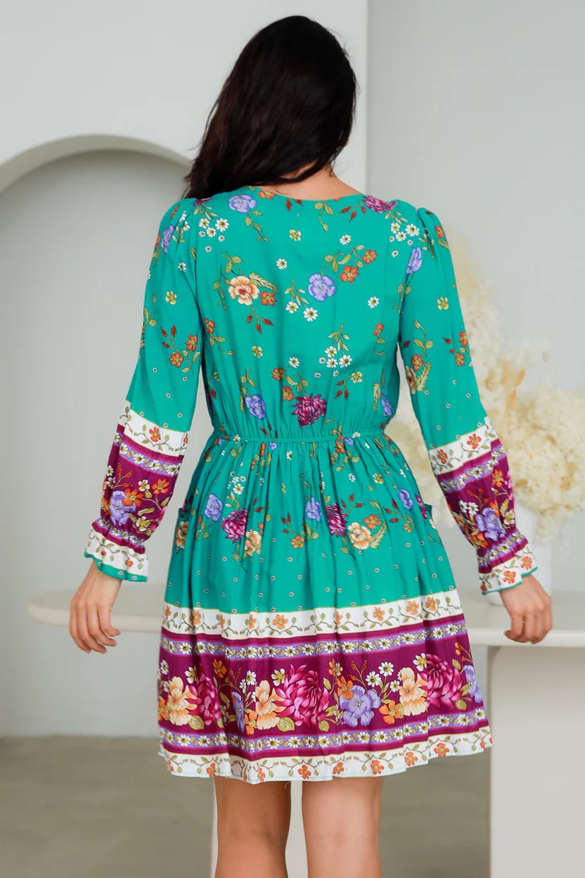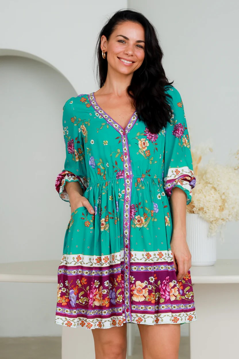 Get ready to turn heads in our Jaylani Mini Dress! With its 3/4 sleeves and flirty silhouette, you'll be the star of any party. Strut your stuff in this playful and stylish dress that's perfect for any occasion. What more could you ask for?