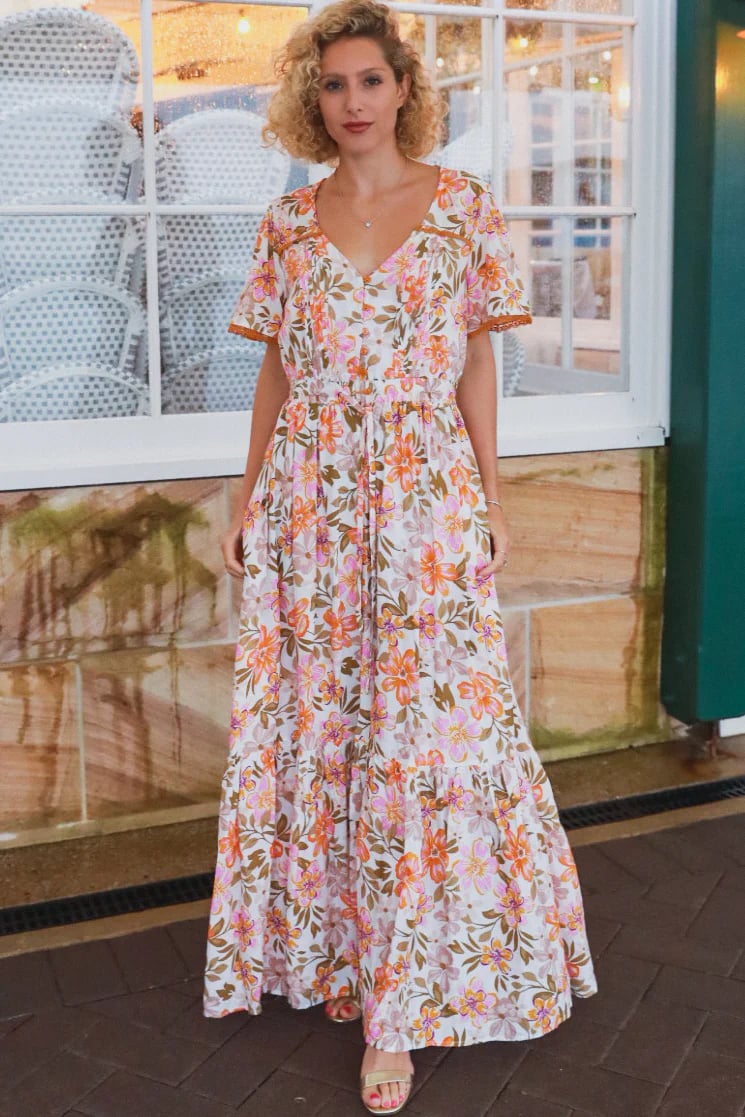 Get ready to turn heads in our Layla Maxi Dress! This stunning floral dress features a v-neckline and a flowy maxi style, perfect for any occasion. With its gorgeous design, you'll feel confident and beautiful all day long. Don't miss out on this must-have addition to your wardrobe!