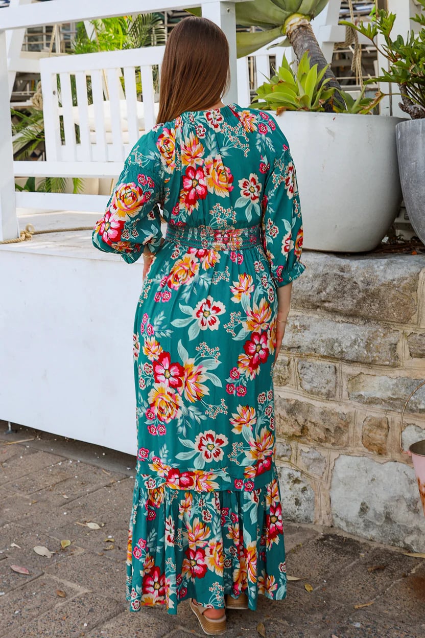 Go boho with the Natalia maxi dress! This dark and flowy dress is perfect for any occasion, from a music festival to a romantic date. Embrace your inner free spirit and make a statement in this playful and unique piece.