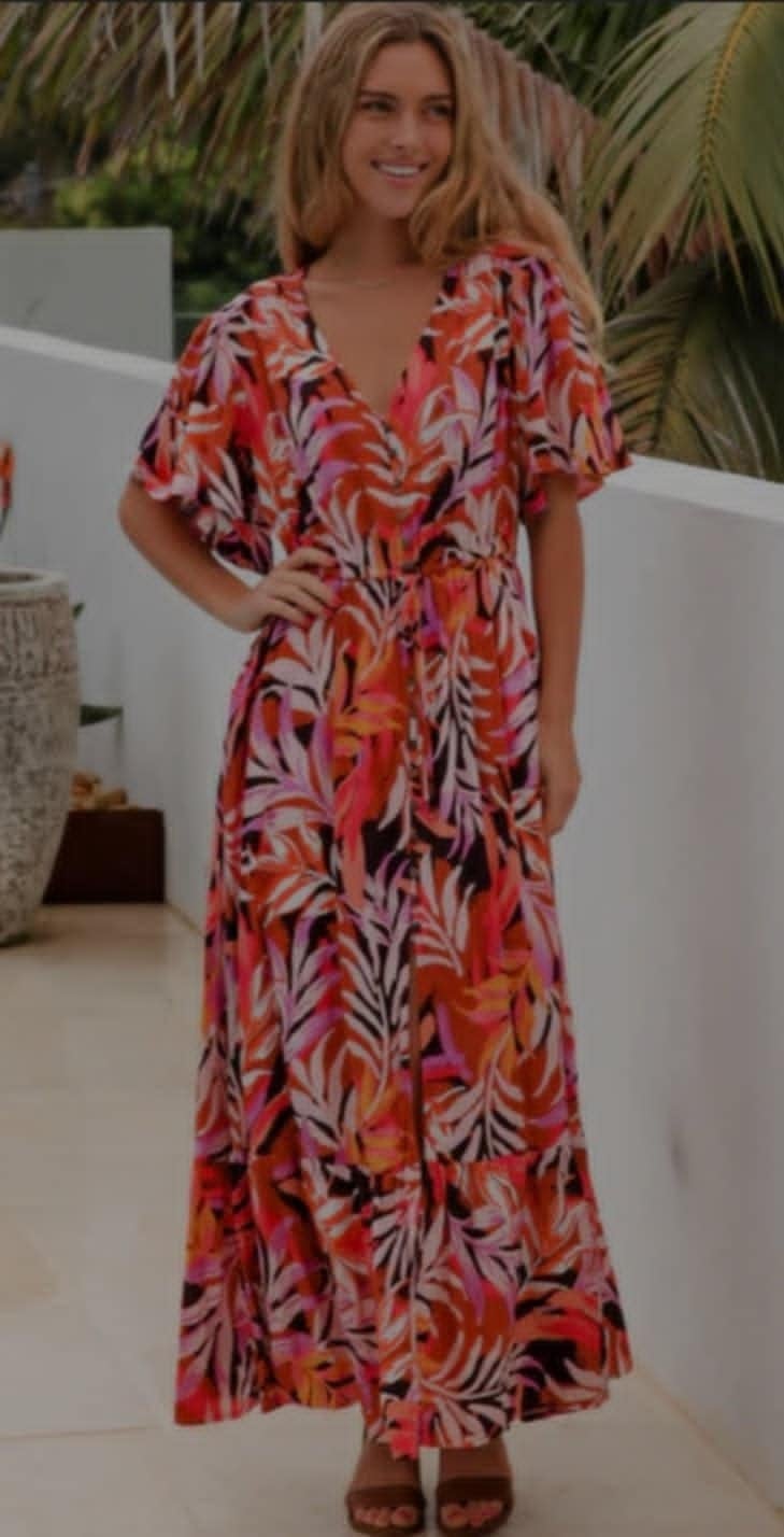 Dress to impress in the Raleigh Plus Size Maxi Dress! With its leafy design and vibrant orange color, this long and flowy dress will have you standing out in any crowd. Perfect for any occasion, this dress will surely turn heads and make you feel confident and chic.