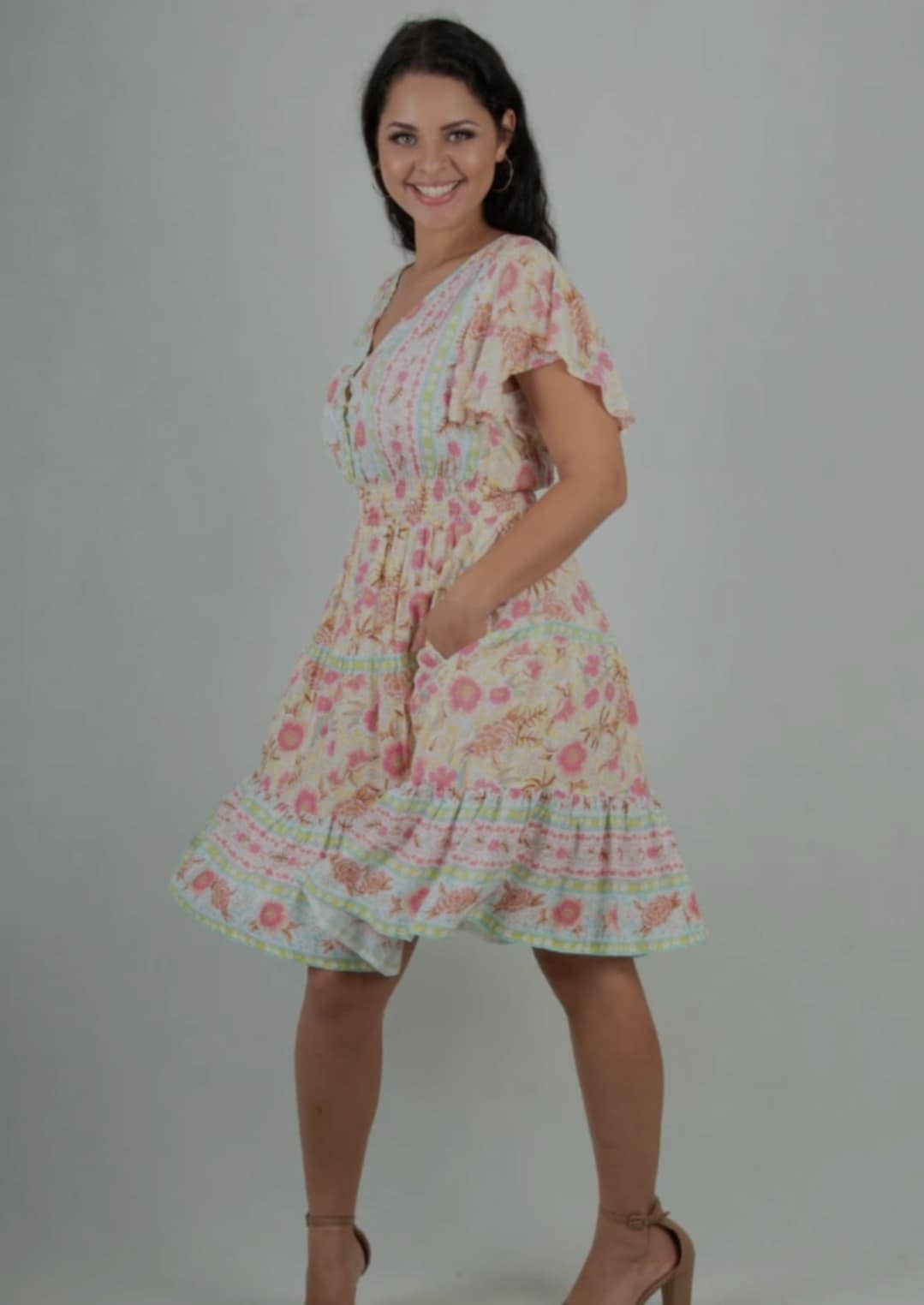 Indulge in a sweet style with our Vanilla Sundae floral dress. With its v neckline and crisp white color, this dress is perfect for any occasion. Whether you're dressing up or keeping it casual, you'll feel fresh and chic in this playful piece.